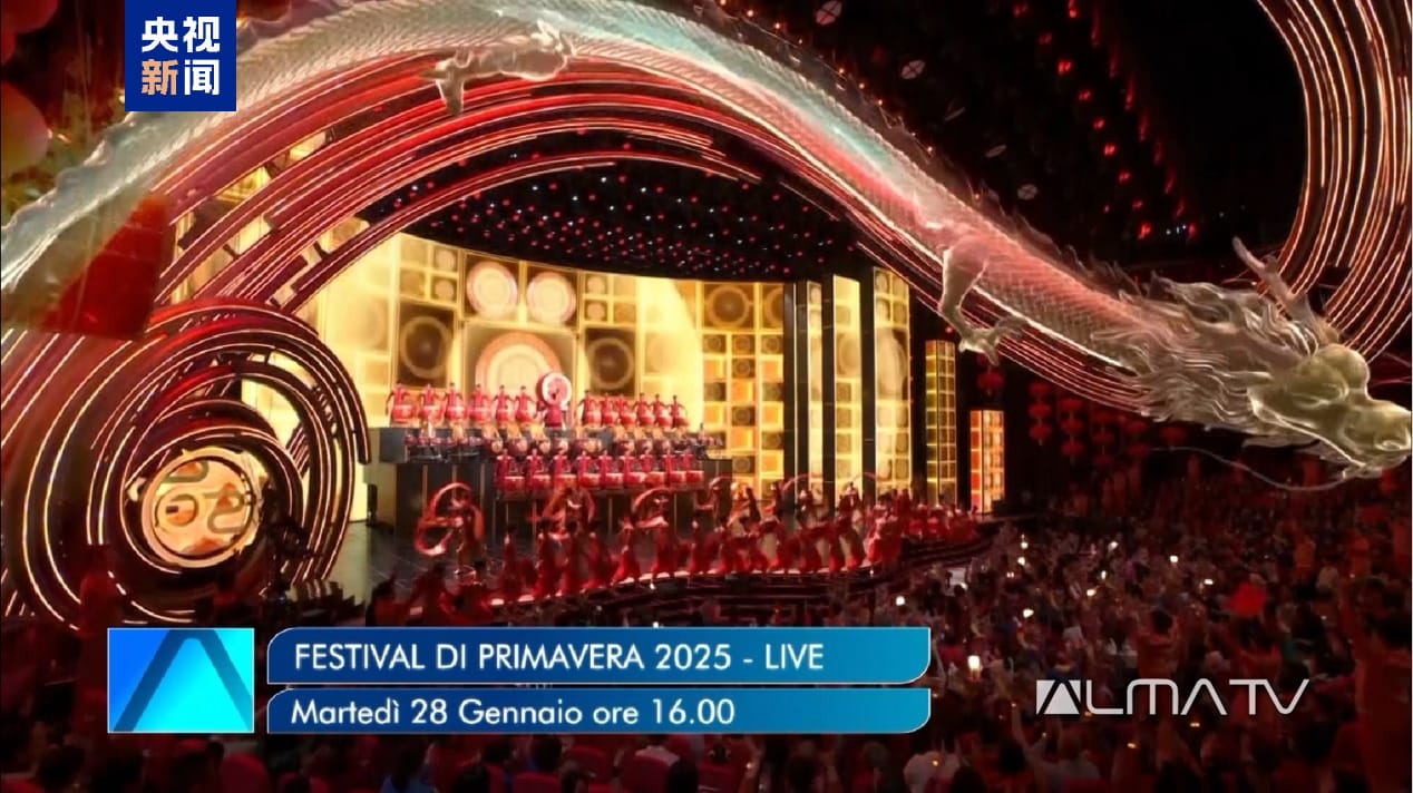 بیجنگ (نمائندہ خصوصی) اٹلی میں الما ٹی وی نے چائنا میڈیا گروپ  کے 2025 اسپرنگ فیسٹیول گالا کی پروموشنل ویڈیو  نشر  کی۔ یہ مسلسل چوتھا سال ہے جب الما ٹی وی نے سی ایم جی کے اسپرنگ فیسٹیول گالا کی خصوصی براہ راست نشریات کا اہتمام کیا ہے۔ اسپرنگ فیسٹیول کے دوران الما ٹی وی ، ڈونا ٹی وی ، لازیو ٹی وی اور اٹلی چینل 7  سمیت اٹلی کے  10 سے زیادہ قومی ٹی وی چینلز  25 ملین گھرانوں کواسپرنگ فیسٹیول گالا کا اطالوی مختصر ورژن نشر کریں گے۔